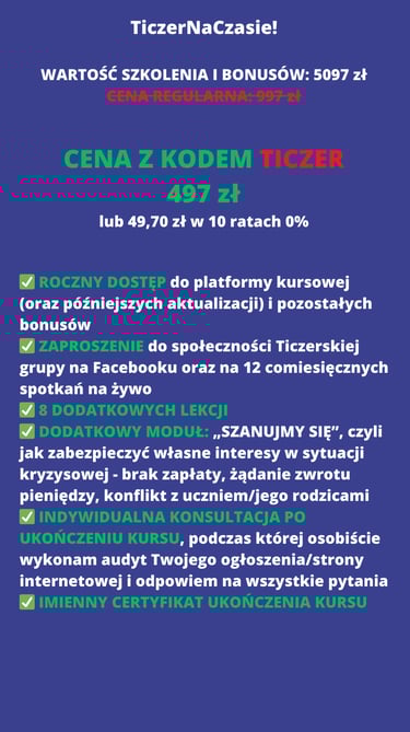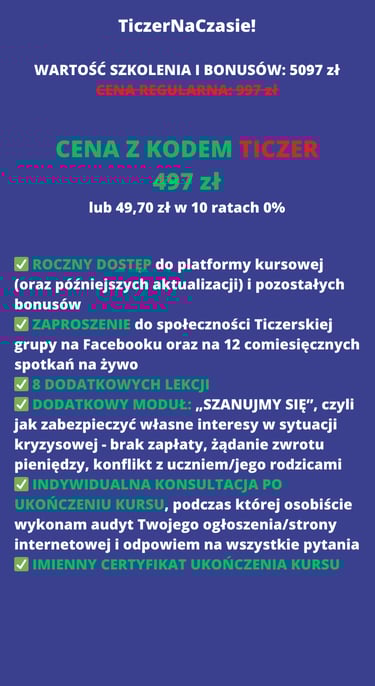 Z KODEM TICZER -500 ZŁOTYCH ZNIŻKI NA KURS Z BONUSAMI NIEDOSTĘPNYMI NIGDZIE INDZIEJ
